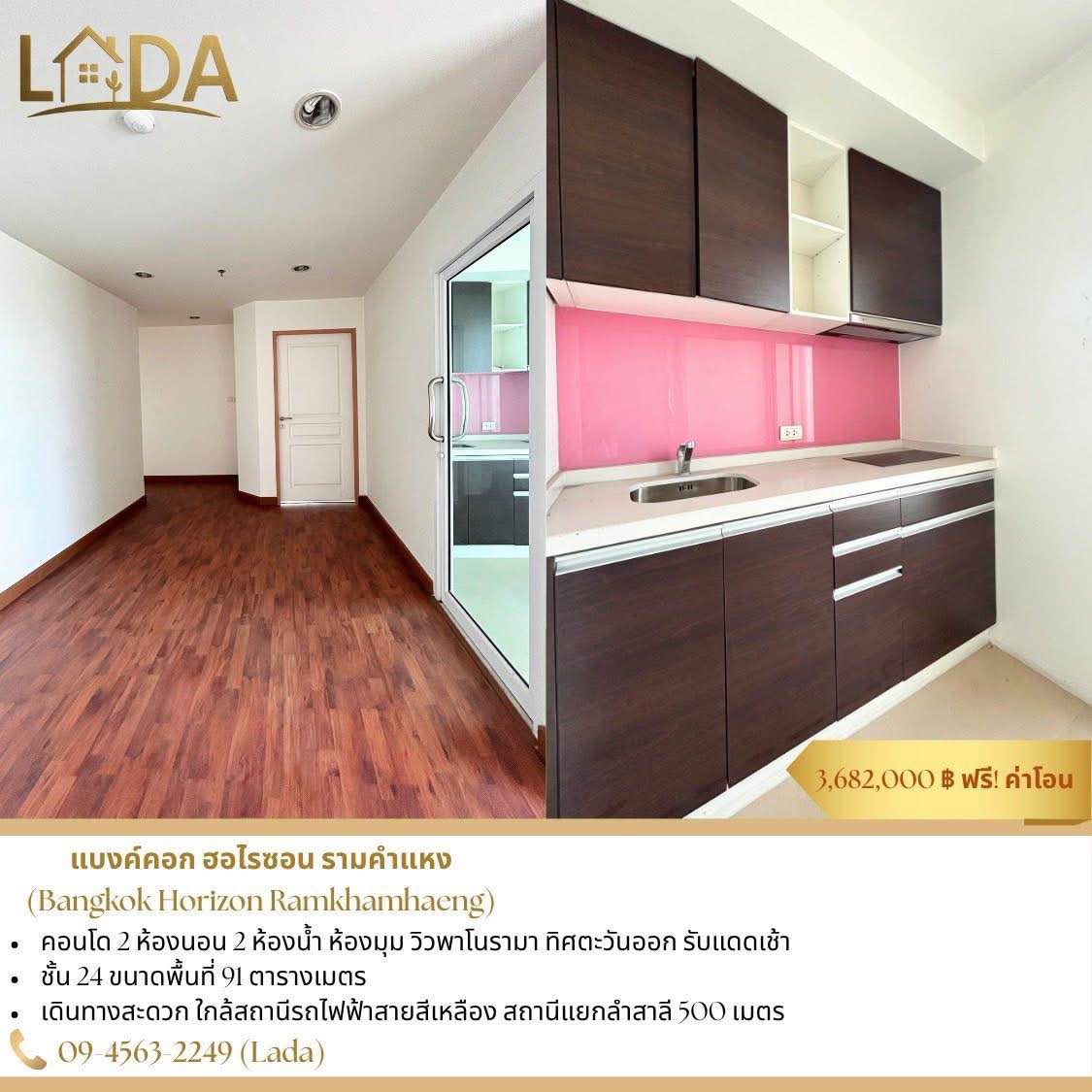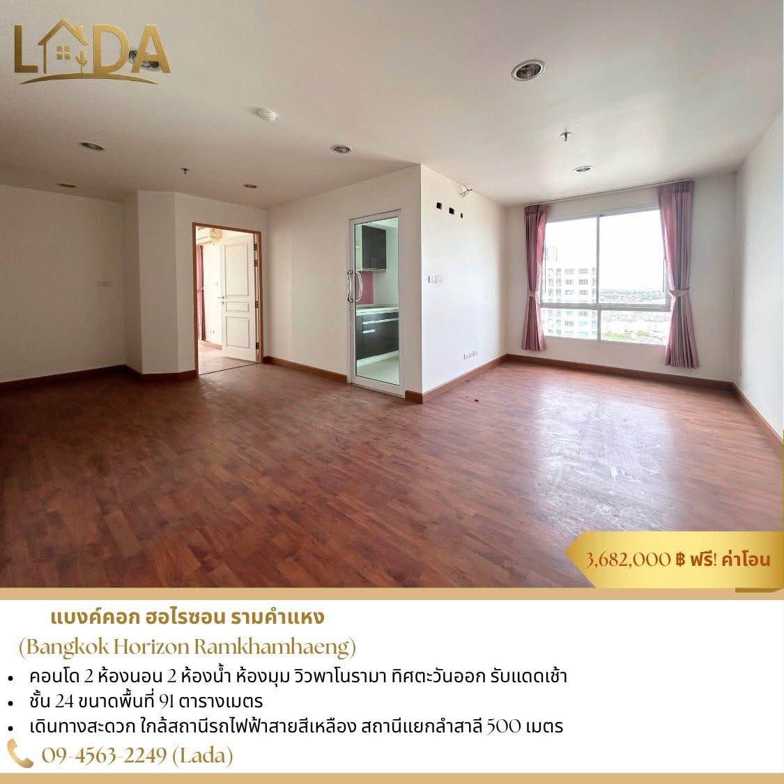 2 Beds 2 Baths - Apartment ถนน รามคําแหง, บางกะปิ, กรุงเทพมหานคร, กรุงเทพมหานคร 10240, ประเทศไทย แบงค์คอก ฮอไรซอน รามคำแหง Bangkok Horizon Ramkhamhaeng คอนโดคุณภาพ วิวพา Panorama ห้องมุม พื้นที่กว้าง อยู่สบาย ใกล้สถานีรถไฟฟ้า เดินทางสะดวก ชั้น 24 พื้นที่ใช้สอย 91 ตร.ม. ฟังก์ชัน - 2 ห้องนอน 2 ห้องน้ำ หันหน้าทิศตะวันออก รับแดดเช้า วิวเมือง ไม่โดนบล็อก มองเห็นทัศนียภาพโดยรอบได้กว้างสุดตา ที่จอดรถได้ 2 คัน ส่วนตัว 1 ส่วนกลาง 1 ระบบความปลอดภัย - ติดตั้ง CCTV พร้อมเจ้าหน้าที่ รปภ. 24ชั่วโมง - Key Card Access สิ่งอำนวยความสะดวก - Lobby, สระว่ายน้ำ, Fitness, Sauna, สวนหย่อม, ห้องสควอช - WiFi, ที่จอดรถ, Shuttle Van สถานที่ในบริเวณใกล้เคียง -ห้างสรรพสินค้าเดอะมอลล์, บางกะปิ, บิ๊กซี, แมคโคร โลตัส, เมเจอร์ฮอลลีวูด - โรงเรียนสาธิตมหาวิทยาลัยรามคำแหง, โรงเรียนนานาชาติไบรท์ตัน, โรงเรียนบดินทรเดชา สิงห์ สิงหเสนี - มหาวิทยาลัยอัสสัมชัญ ABAC, มหาวิทยาลัยรามคำแหง, สถาบันบัณฑิตพัฒนบริหารศาสตร์ NIDA, วิทยาลัยเทคโนโลยีอุตสาหกรรมกรุงเทพ - โรงพยาบาลรามคำแหง, โรงพยาบาลสมิติเวช ศรีนครินทร์, โรงพยาบาลเกษมราษฎร์ รามคำแหง, โรงพยาบาลเวชธานี - ราชมังคลากีฬาสถาน, อินดอร์ สเตเดียม หัวหมาก การเดินทางสะดวก - อยู่รามคำแหง 60 ใกล้สถานีรถไฟฟ้า BTS สายสีเหลือง สถานีแยกลำสาลี สถานีรถไฟฟ้า MRT สายสีส้ม สถานีรามคำแหง และ Airport Link สถานีหัวหมาก - ใกล้ทางด่วนรามอินทรา - อาจณรงค์ - มีรถประจำทางสาธารณะผ่านหน้าโครงการหลายสาย พิเศษ 3,682,000 บาท ฟรี!! ค่าโอน สอบถามรายละเอียดเพิ่มเติม/ นัดชมห้อง Lada: 09-4563-2249 ให้คำปรึกษาด้านสินเชื่อ พร้อมดูแลทุกขั้นตอนจนถึงวันโอน