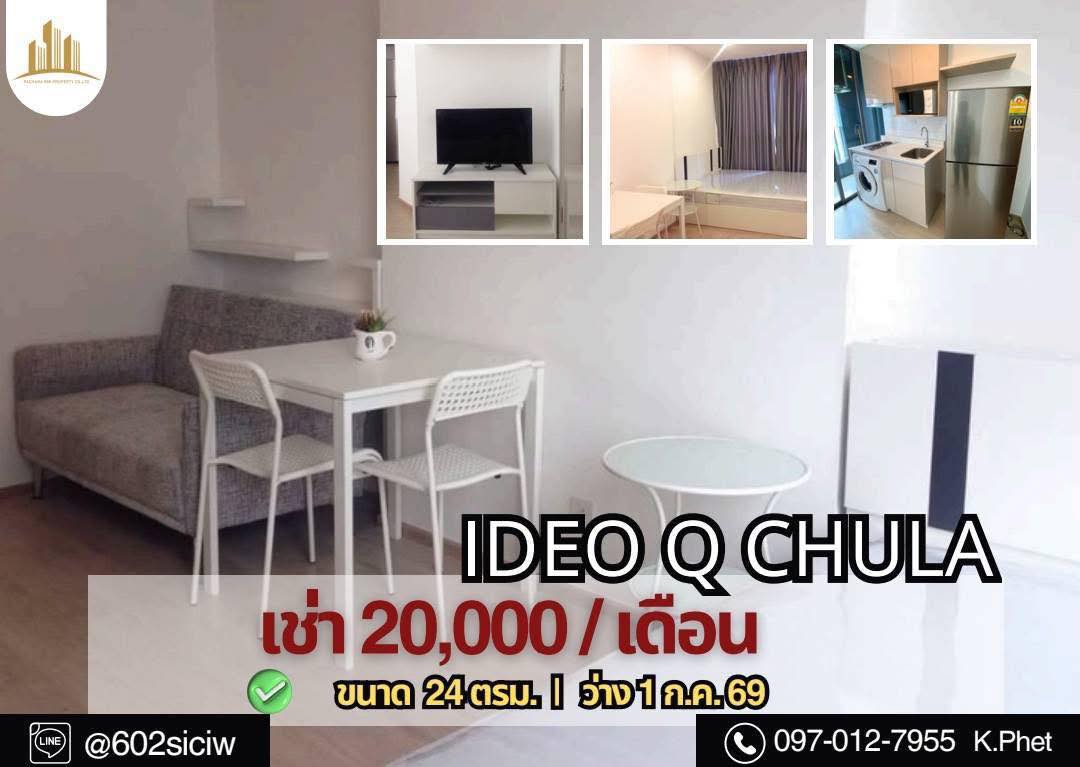 จองด่วน 𝐈𝐝𝐞𝐨 𝐐 𝐂𝐡𝐮𝐥𝐚-𝐒𝐚𝐦𝐲𝐚𝐧 ห้องสวย ครัวหลัง ราคาเช่า 20,000 บาท/เดือน รายละเอียดห้อง 𝐒𝐢𝐳𝐞 24 𝐒𝐪𝐦. 𝟏 ห้องนอน / 𝟏 ห้องน้ำ เฟอร์นิเจอร์ + เครื่องใช้ไฟฟ้าครบ รวมที่จอดรถ ว่าง 1 ก.ค. 69 สัญญาขั้นต่ำ 𝟏 ปี มัดจำ 𝟐 เดือน + ล่วงหน้า 𝟏 เดือน สนใจติดต่อ: โทร: 𝟬𝟵𝟳𝟬𝟭𝟮𝟳𝟵𝟱𝟱 น้องเพชร 𝗟𝗶𝗻𝗲:@602siciw https://lin.ee/uHjIG9X #ให้เช่าคอนโด #𝐈𝐝𝐞𝐨𝐐𝐂𝐡𝐮𝐥𝐚𝐒𝐚𝐦𝐲𝐚𝐧 #คอนโดสามย่าน #คอนโดใกล้𝐌𝐑𝐓 #คอนโดจุฬา