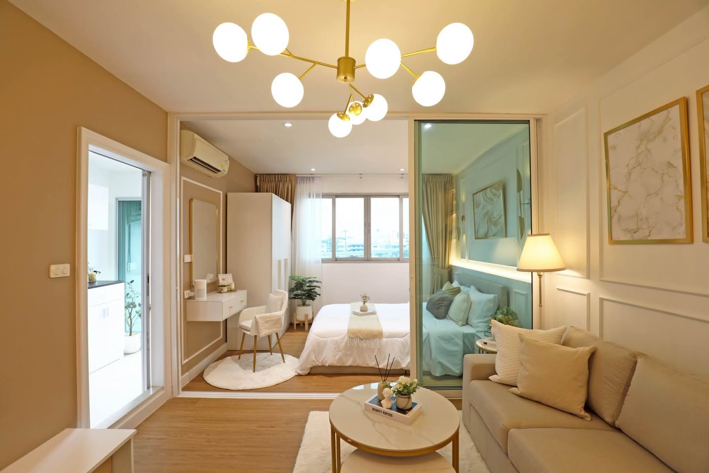 - ขนาด : 30.18 ตร.ม. (มีฉากกั้นห้องนอน กับ ห้องนั่งเล่น)
