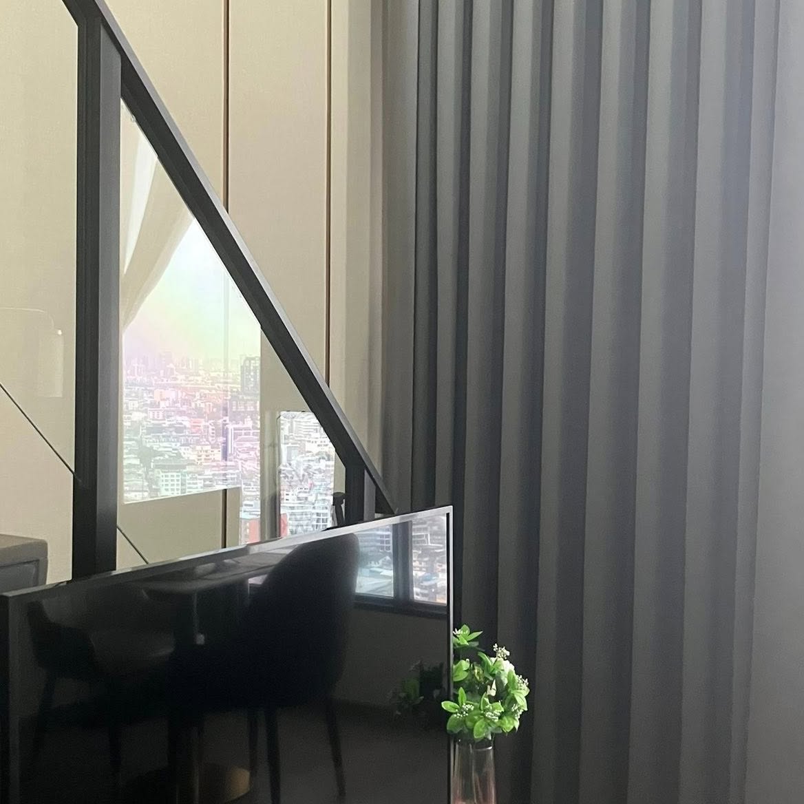 - Duplex หรือห้องแบบ 2 ชั้นที่มีฝ้าเพดานสูงโปร่ง เห็นวิวเมืองชัด